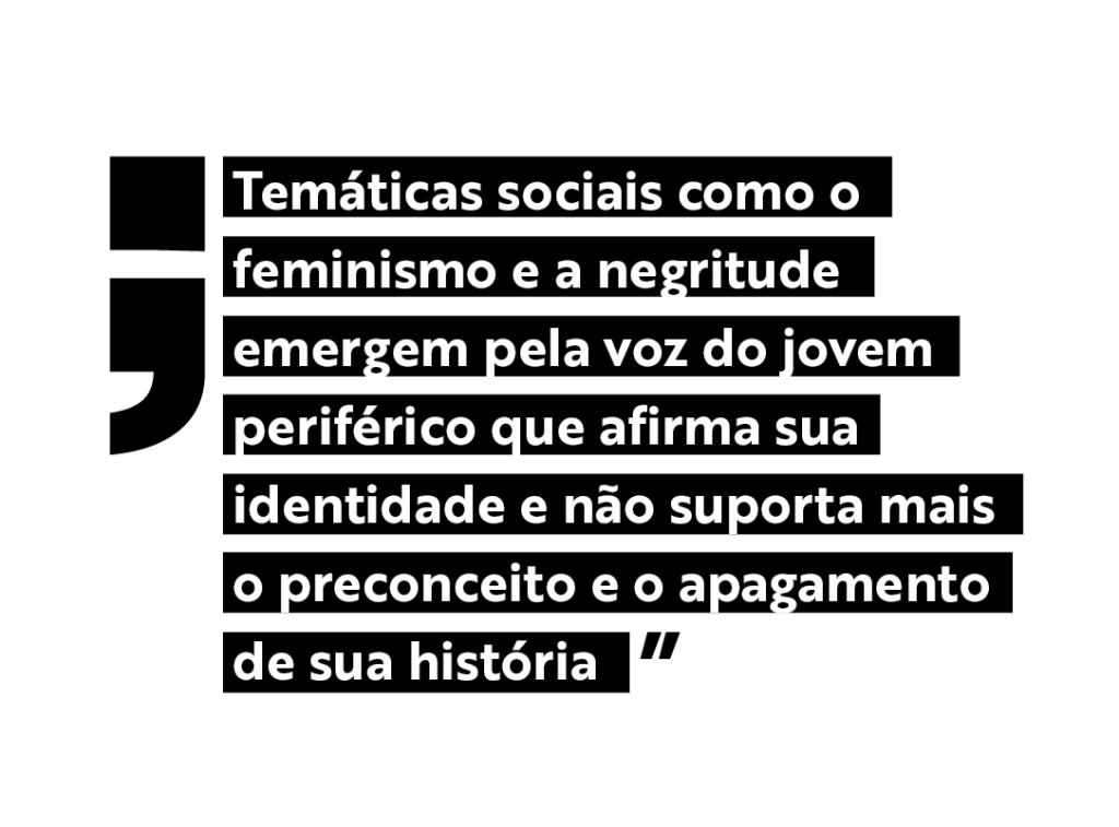 Já deu pra ver que essa gurizada, oriunda das periferias de Porto Alegre, tem muito a dizer. Temáticas sociais como o feminismo e a negritude emergem pela voz do jovem periférico que afirma sua identidade e não suporta mais o preconceito e o apagamento de sua história e de suas vidas; o cenário distópico é colocado na vitrine, como denúncia. Outras temáticas ligadas ao universo adolescente, como o amor e a liberdade, também estão presentes, porque há de se esperançar com o coração aquecido.