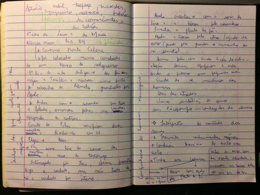 Gosto de criar roteiros para minhas histórias, mesmo que depois tudo mude completamente. Faço isso em blocos ou cadernos que acabo guardando como processo de criação. Mesmo uma revisão de texto, gosto de imprimir o original, ter uma dimensão física do escrito. Crio os perfis das personagens, faço pesquisa de discurso, tudo nesses cadernos.