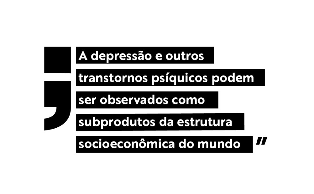 “Todos eles com emprego estável e segurança financeira, ainda assim reféns de uma infelicidade inexplicável que paira acima de seus dias como uma nuvem sombria, que são forçados a esconder no ambiente de trabalho para não comprometer produtividade e eficiência. Cada um com sua infelicidade particular. Pois, assim como dizem a respeito dos flocos de neve, não há no mundo uma infelicidade igual à outra”
