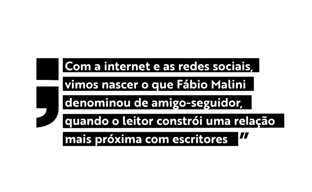 Nesse contexto, surgem também novos fenômenos, principalmente na relação do público com escritores de livros, que antes da era digital eram muito distantes e envoltos em formalidades. Com a internet e as redes sociais, vimos nascer o que Fábio Malini denominou de amigo-seguidor, quando o leitor constrói uma relação mais próxima com escritores, através das redes sociais, fazendo surgir relações de parceria com seu autor de preferência. A partir disso, há mobilizações de comunidades que produzem conteúdos como resenhas, críticas, compartilhamentos, participação em eventos, organizando encontros a favor dos autores favoritos.