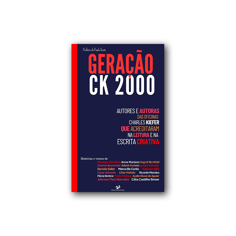 Já está disponível pelo site da Editora Consultor Editorial o livro Geração CK 2000, que reúne contos e poemas, entre inéditos e premiados, de 17 autores que têm, em comum, experiências com a memorável oficina de escrita criativa de Charles Kiefer nos anos 2000. São 17 nomes representativos de uma geração literária de Porto Alegre. Na época, Kiefer não só reuniu centenas de interessados na escrita e na ficção, como publicou e motivou muitos a compreender e a se aprofundar no mundo da escrita, gerando carreiras e modificando vidas de toda uma geração.